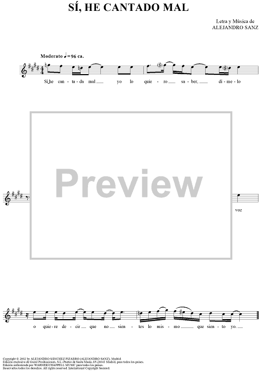 "Sí, He Cantado Mal" Sheet Music by Alejandro Sanz
