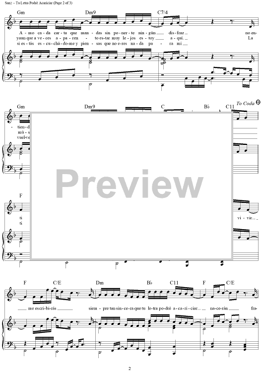 Digital Sheet Music for Tu Letra Podré Acariciar by Alejandro Sanz scored for Piano/Vocal/Chords; id:449388