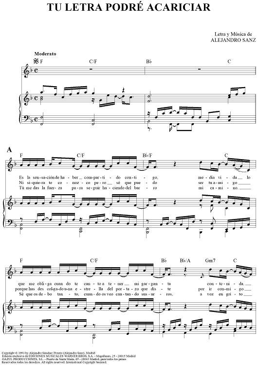 "Tu Letra Podré Acariciar" Sheet Music by Alejandro Sanz