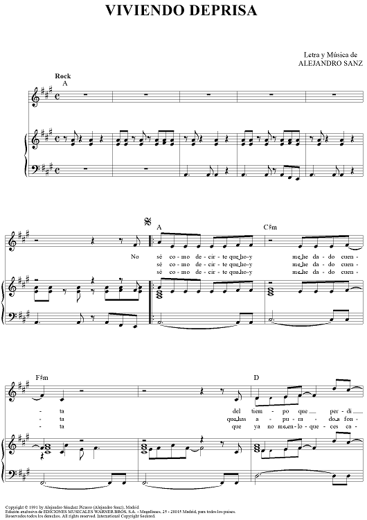 "Viviendo Deprisa" Sheet Music by Alejandro Sanz