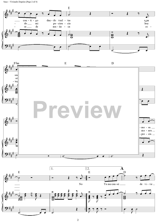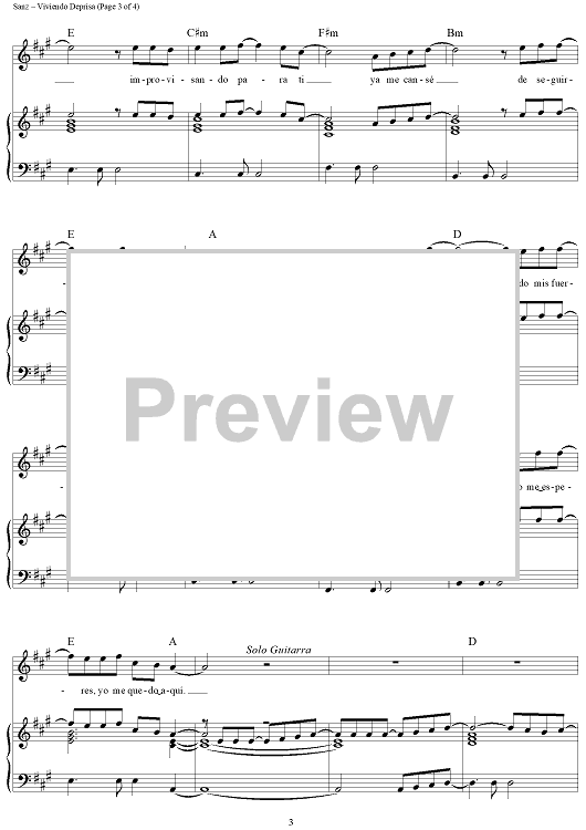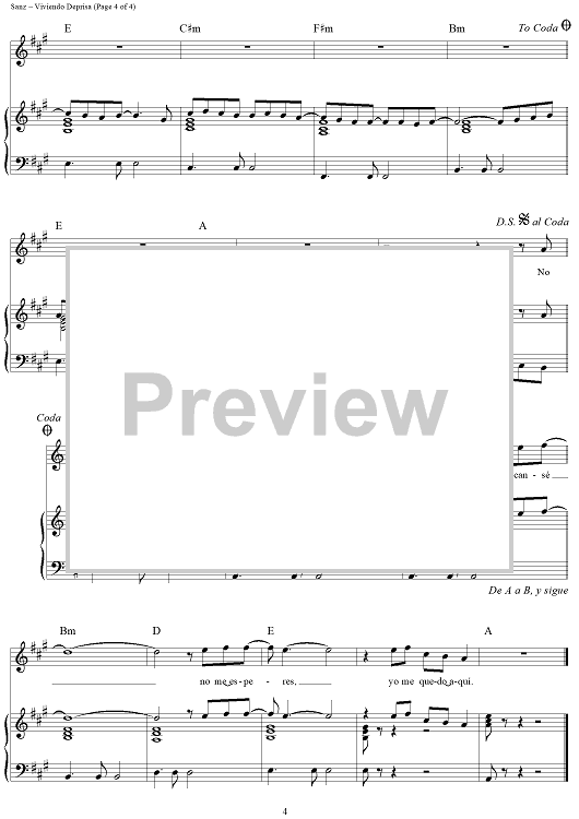 Digital Sheet Music for Viviendo Deprisa by Alejandro Sanz scored for Piano/Vocal/Chords; id:449389