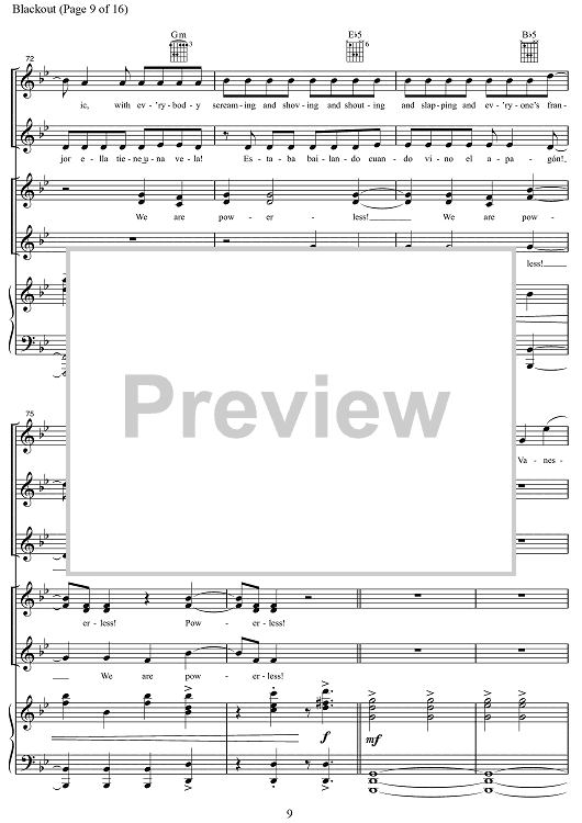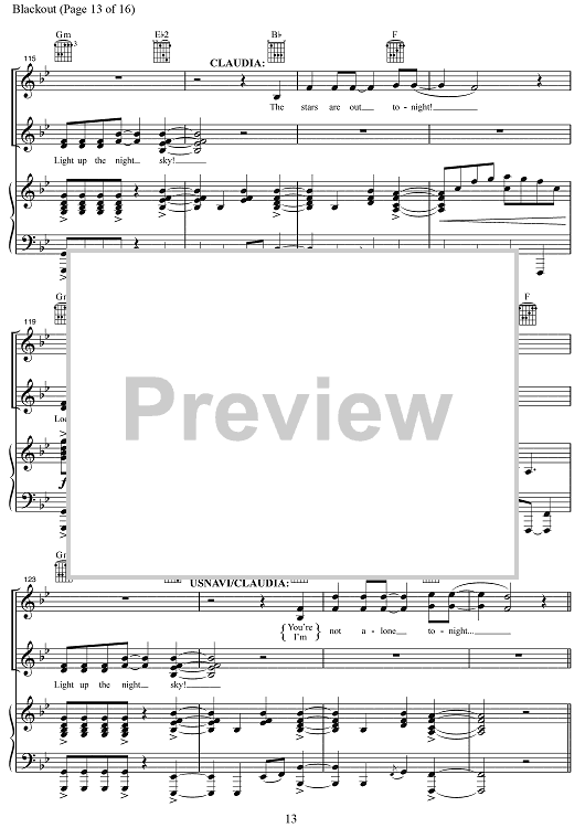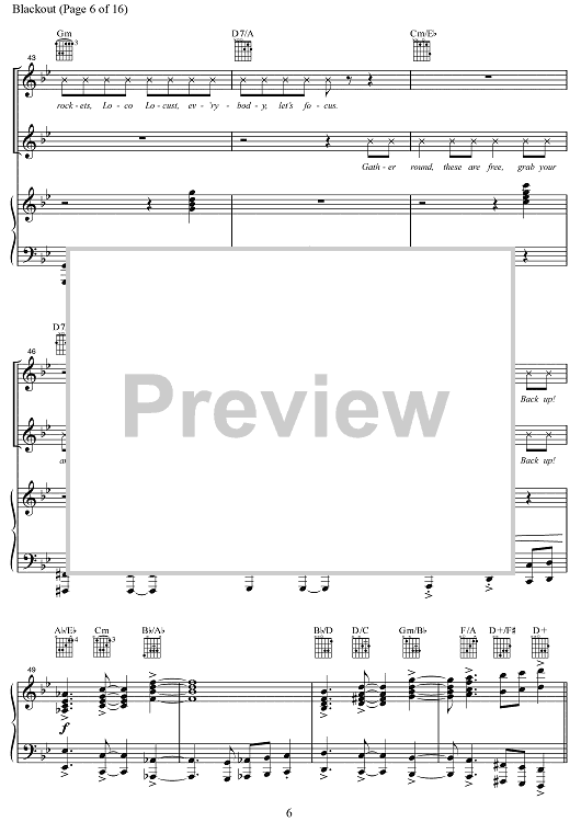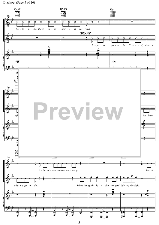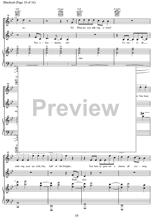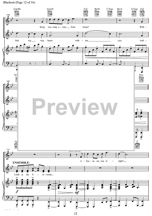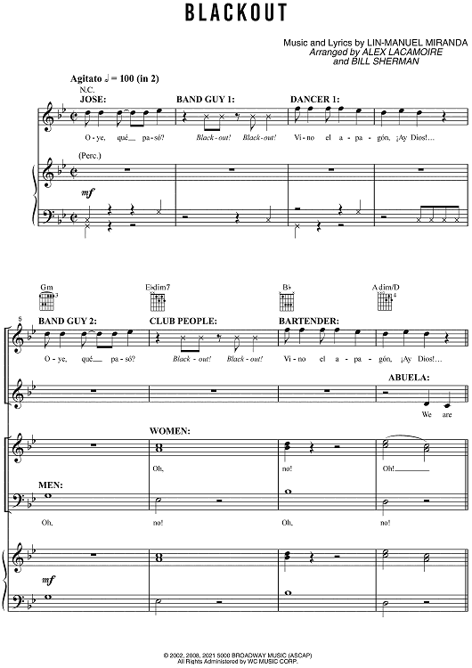Digital Sheet Music for Blackout by Lin-Manuel Miranda, Alex Lacamoire, Bill Sherman scored for Piano/Vocal/Chords; id:469416