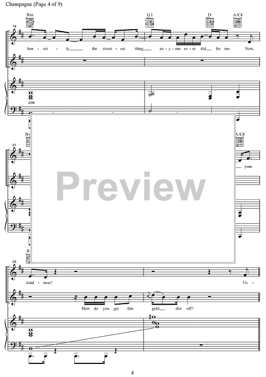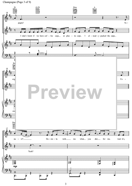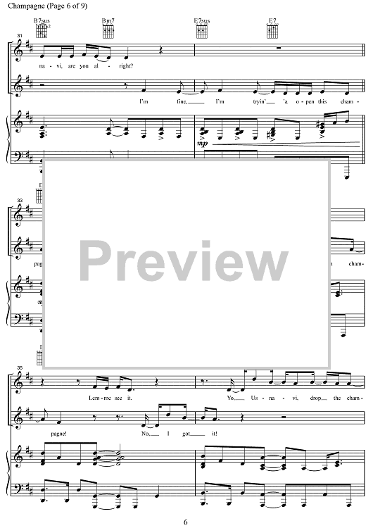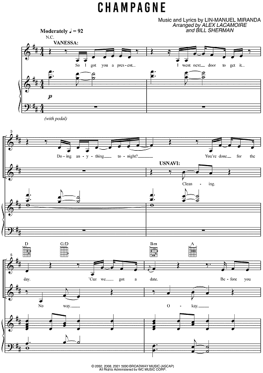 Digital Sheet Music for Champagne by Lin-Manuel Miranda, Alex Lacamoire, Bill Sherman scored for Piano/Vocal/Chords; id:469417
