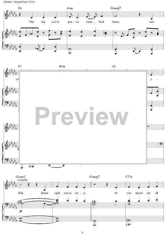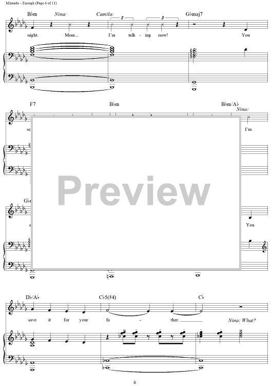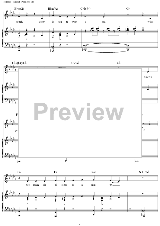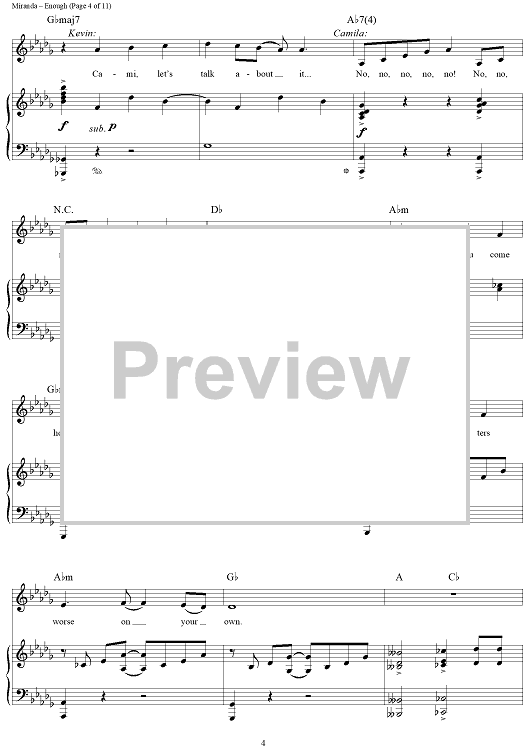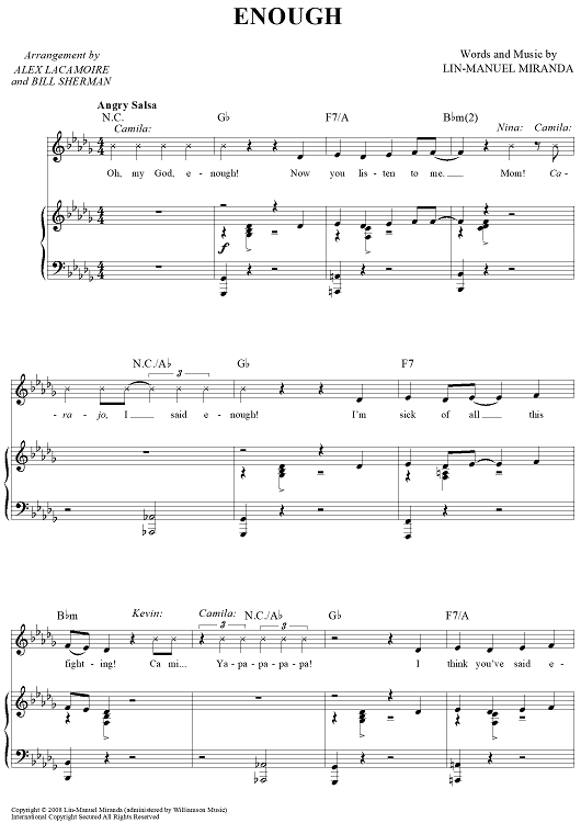 Digital Sheet Music for Enough by Lin-Manuel Miranda, Alex Lacamoire, Bill Sherman scored for Piano/Vocal/Chords; id:457410