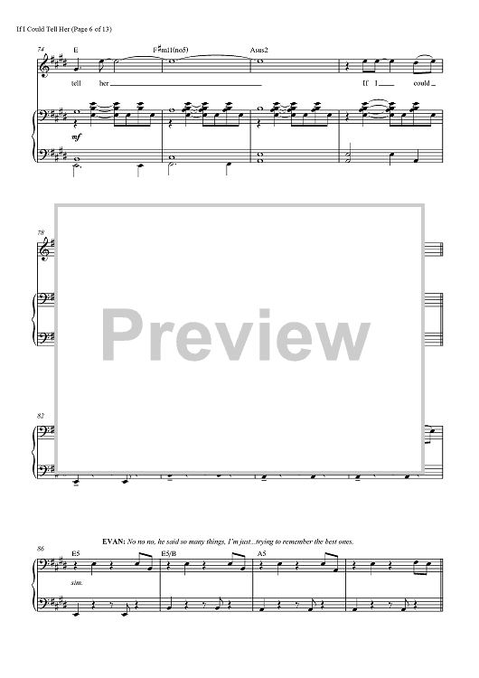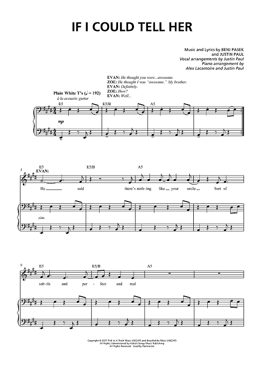 Digital Sheet Music for If I Could Tell Her - from Dear Evan Hansen by Benj Pasek, Justin Paul, Alex Lacamoire scored for Piano/Vocal/Chords; id:465162