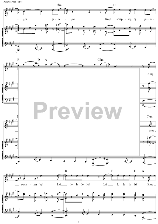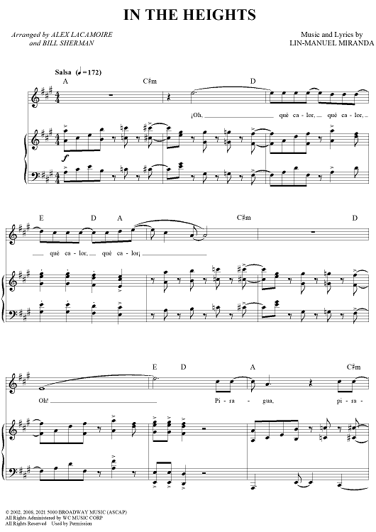 Digital Sheet Music for Piragua by Lin-Manuel Miranda, Alex Lacamoire, Bill Sherman scored for Piano/Vocal/Chords; id:469421