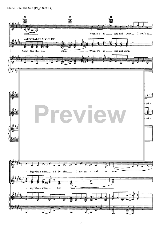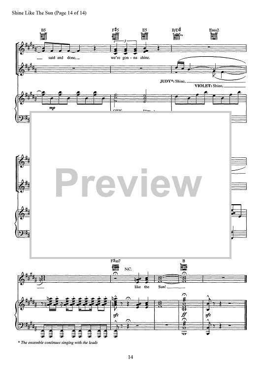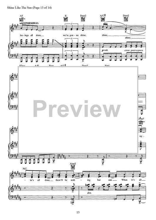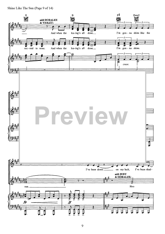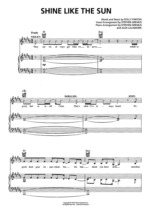 Digital Sheet Music for Shine Like The Sun - from 9 To 5 The Musical by Stephen Oremus, Alex Lacamoire, Dolly Parton scored for Piano/Vocal/Chords; id:467539