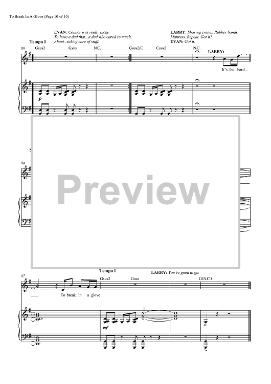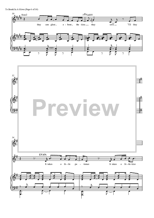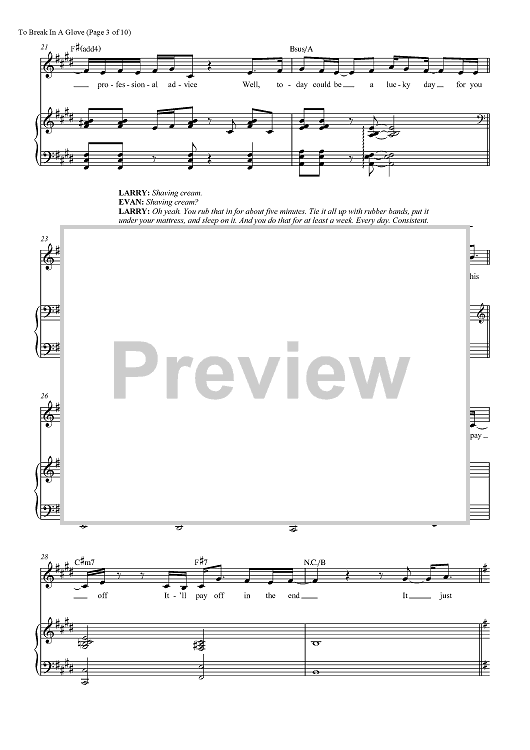 Digital Sheet Music for To Break In A Glove - from Dear Evan Hansen by Benj Pasek, Justin Paul, Alex Lacamoire scored for Piano/Vocal/Chords; id:465167