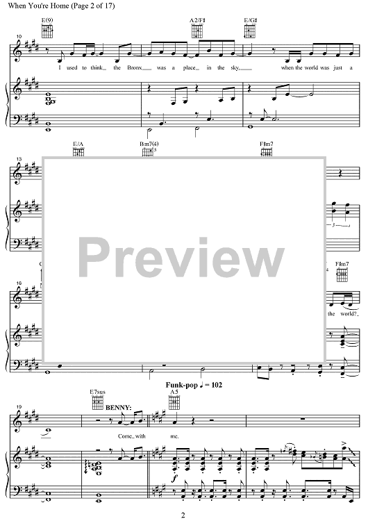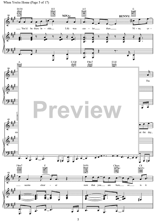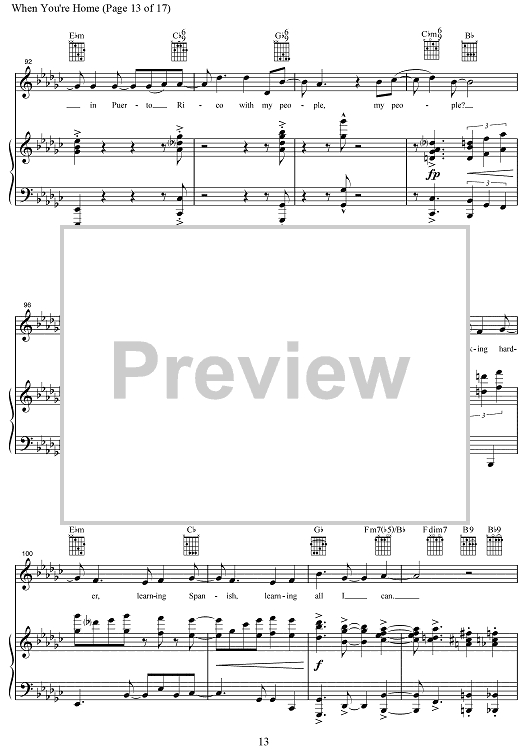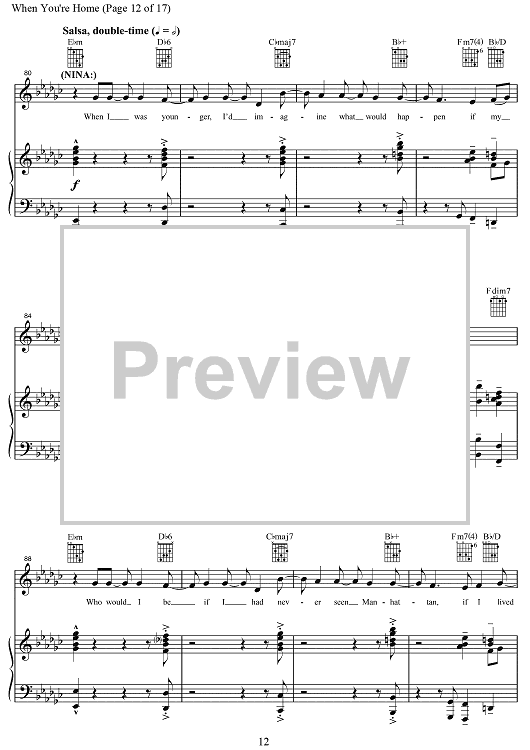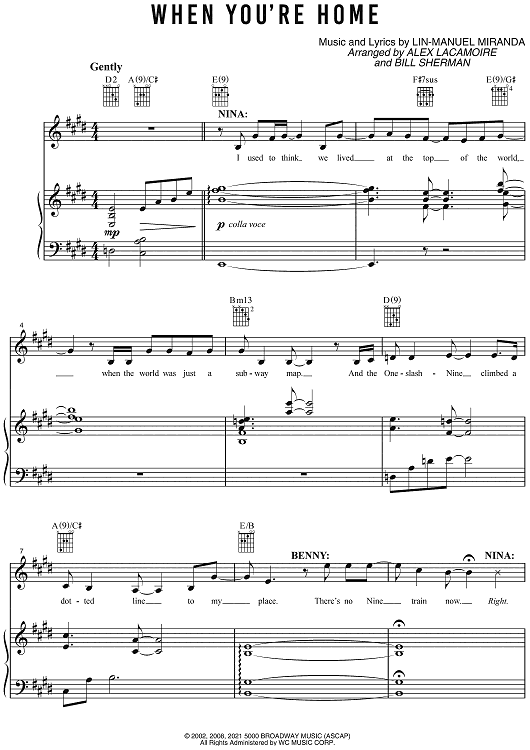 Digital Sheet Music for When You're Home by Lin-Manuel Miranda, Alex Lacamoire, Bill Sherman scored for Piano/Vocal/Chords; id:469424