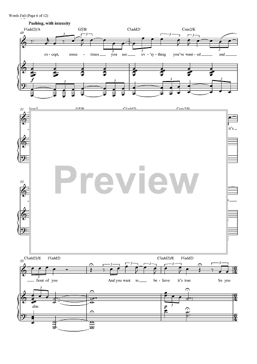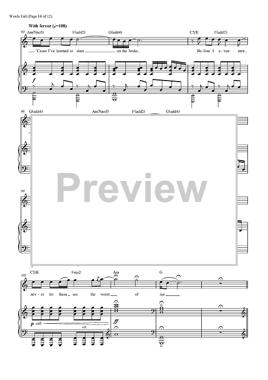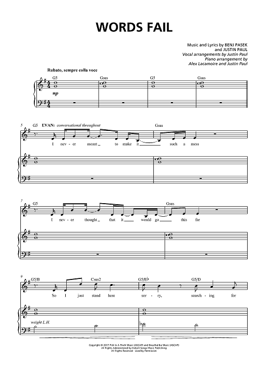 Digital Sheet Music for Words Fail - from Dear Evan Hansen by Benj Pasek, Justin Paul, Alex Lacamoire scored for Piano/Vocal/Chords; id:465168