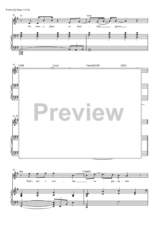 "Words Fail - from Dear Evan Hansen" Sheet Music by Benj Pasek