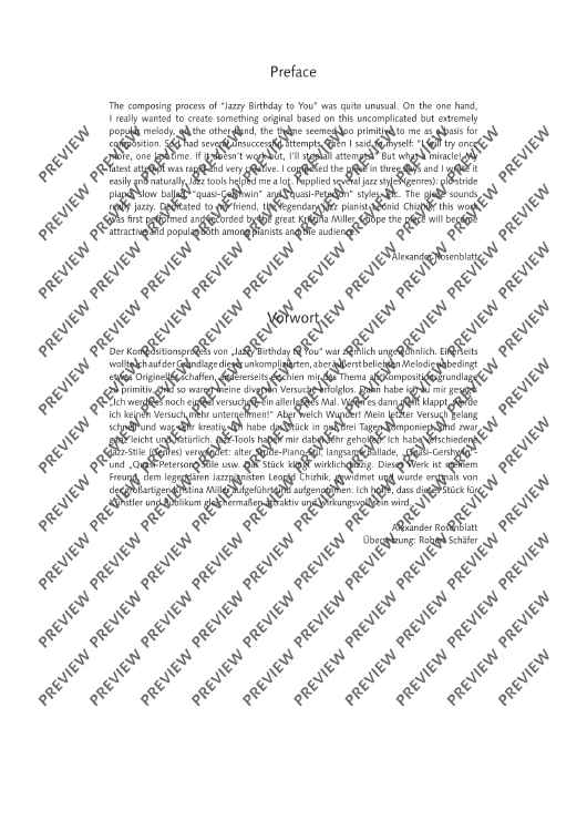 In „Jazzy Birthday to You“ variiert Alexander Rosenblatt die beliebte Melodie mit verschiedenen Jazz-Stilen: Stride-Piano, langsame Ballade, „Quasi-Gershwin“ und „Quasi-Peterson“