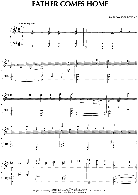 "Father Comes Home - from Little Women" Sheet Music by Alexandre Desplat