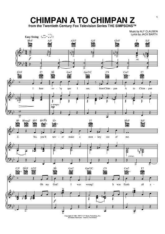 Digital Sheet Music for Chimpan A To Chimpan Z by Alf Clausen, Jack Barth scored for Piano/Vocal/Chords; id:394043