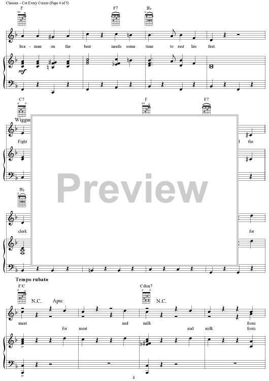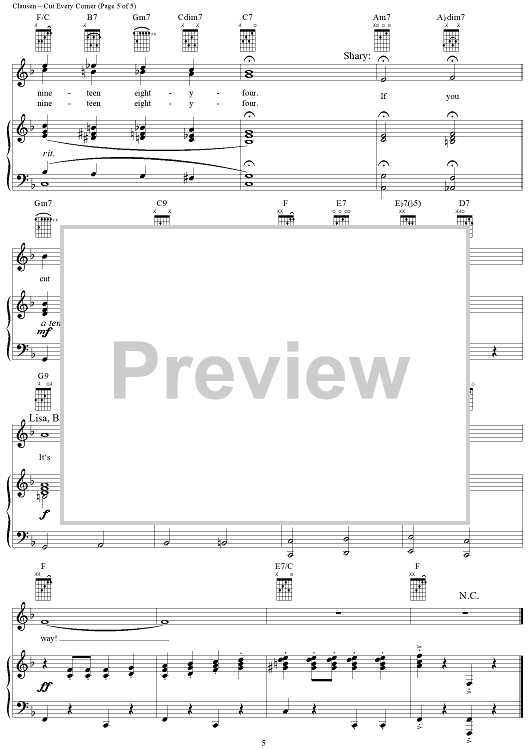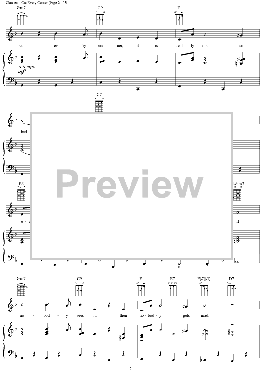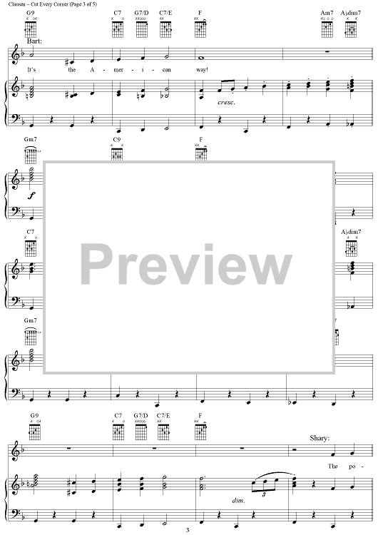 Digital Sheet Music for Cut Every Corner by Alf Clausen, Al Jean, Michael Reiss scored for Piano/Vocal/Chords; id:293565