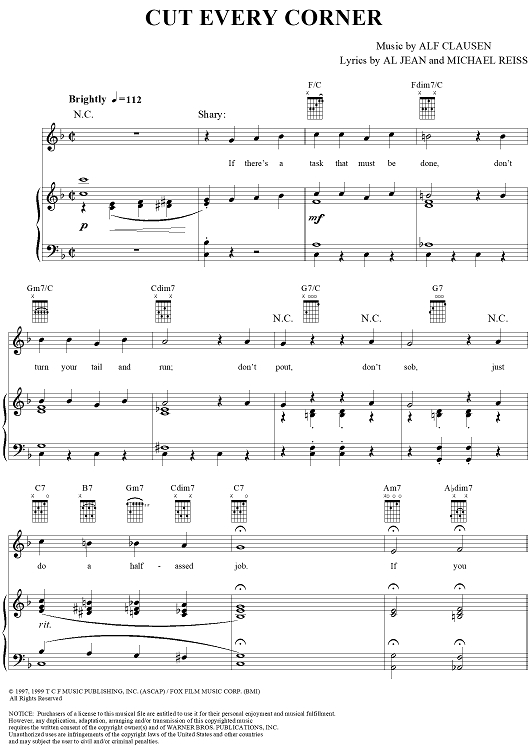 "Cut Every Corner" Sheet Music by Alf Clausen