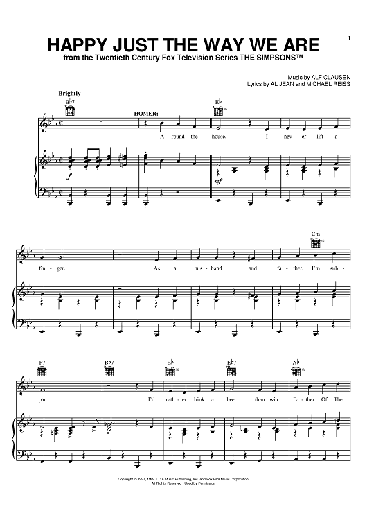 Digital Sheet Music for Happy Just The Way We Are by Alf Clausen, Al Jean, Michael Reiss scored for Piano/Vocal/Chords; id:394054