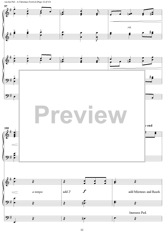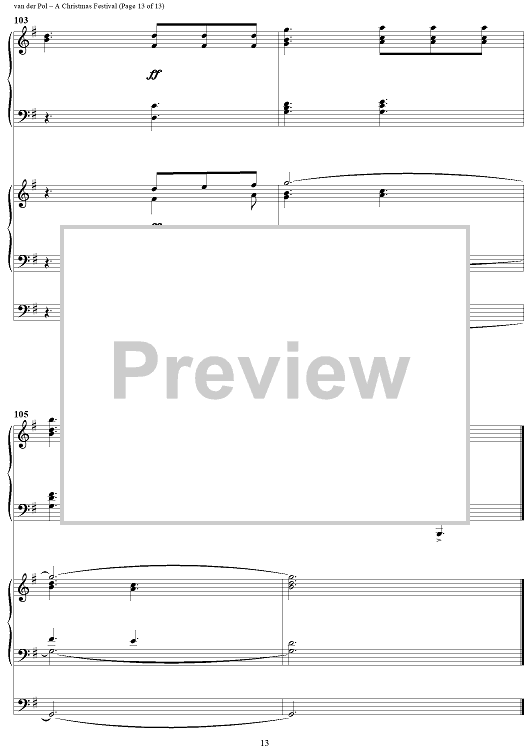 Digital Sheet Music for A Christmas Festival by Jerry van der Pol scored for Organ/Piano; id:286977