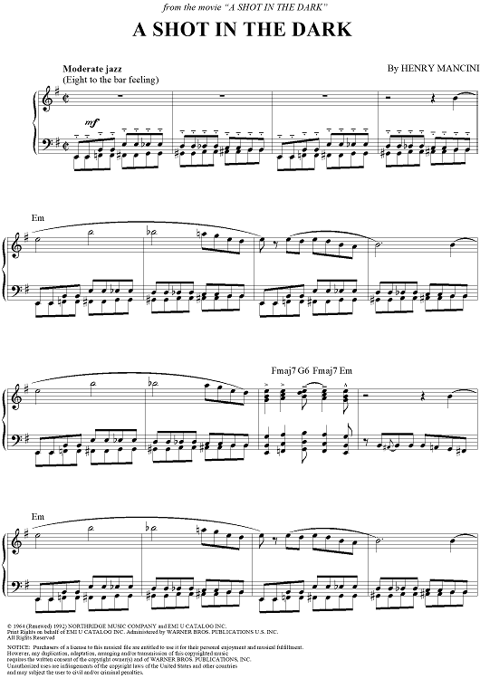 "A Shot in the Dark" Sheet Music by Henry Mancini