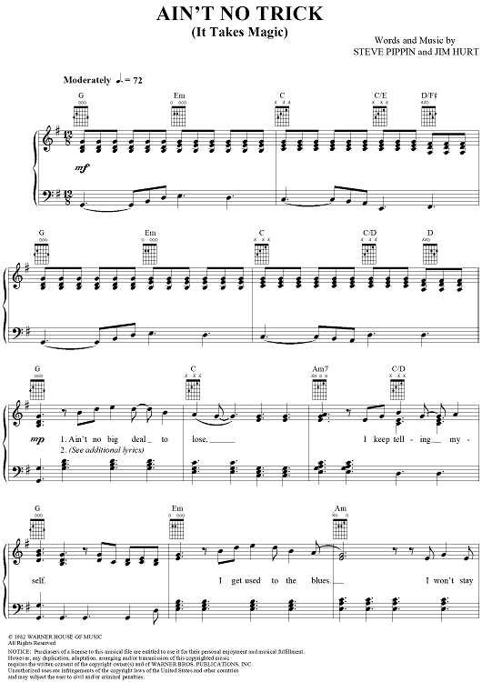 Digital Sheet Music for Ain't No Trick (It Takes Magic) by Jim Hurt, Lee Greenwood, Steve Pippin scored for Piano/Vocal/Chords; id:254612