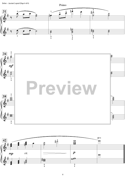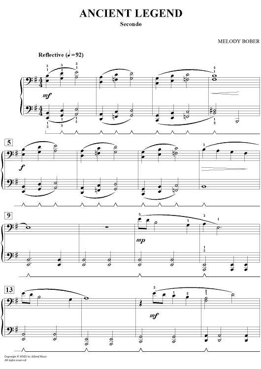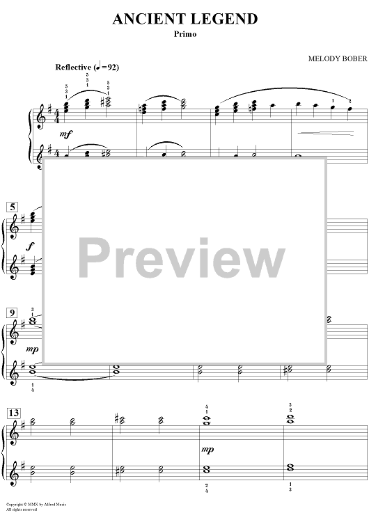 Digital Sheet Music for Ancient Legend by Melody Bober scored for 1 Piano, 4 Hands; id:468961