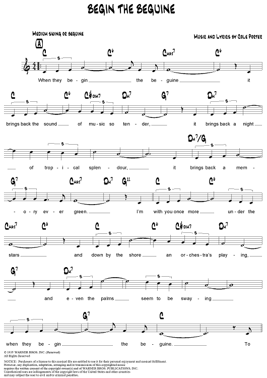 Digital Sheet Music for Begin the Beguine by Cole Porter scored for Lead Sheet; id:312174