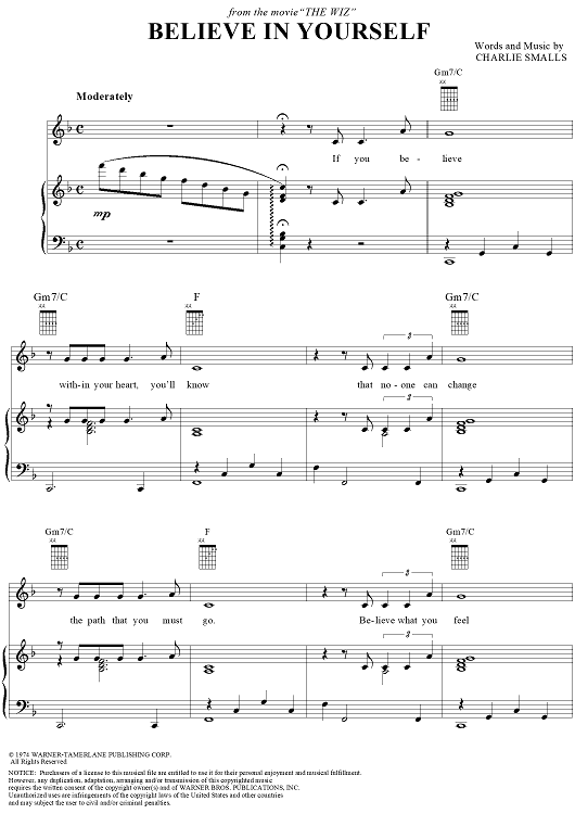 Digital Sheet Music for Believe in Yourself by Charlie Smalls scored for Piano/Vocal/Chords; id:258082