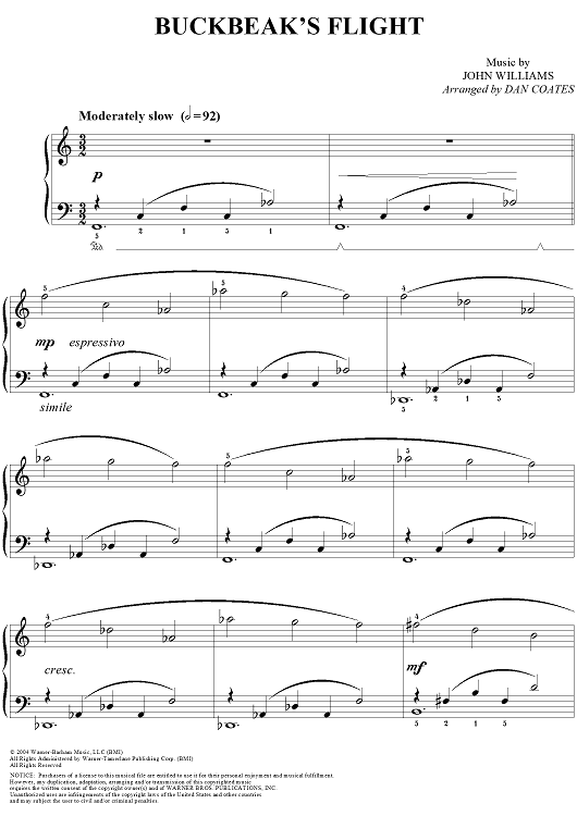 Digital Sheet Music for Buckbeak's Flight by Dan Coates, John Williams scored for Easy Piano; id:311524