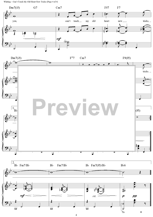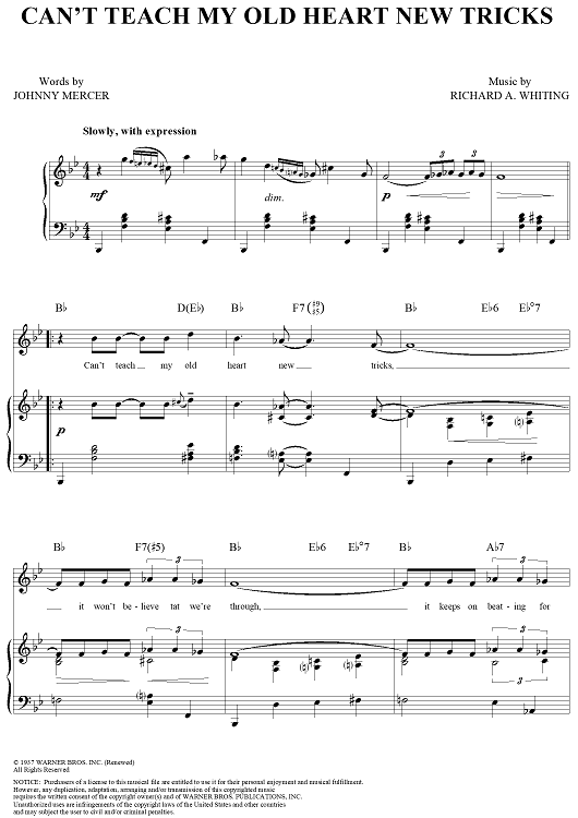 Digital Sheet Music for Can't Teach My Old Heart New Tricks by Johnny Mercer, Richard A. Whiting, Margaret Whiting scored for Piano/Vocal/Chords; id:286454