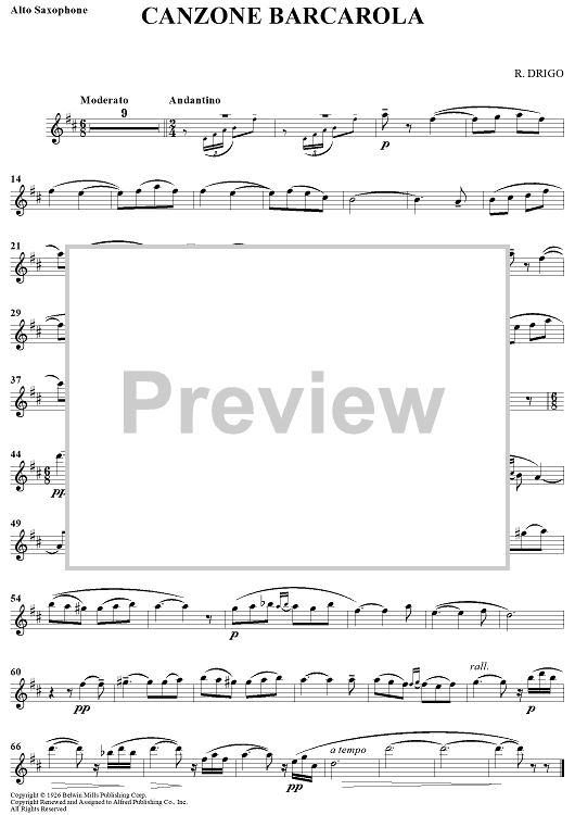 Digital Sheet Music for Canzone Barcarola by Riccardo Drigo scored for Eb Alto Sax/Piano; id:434561