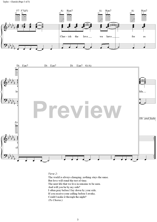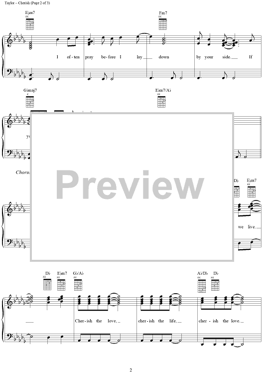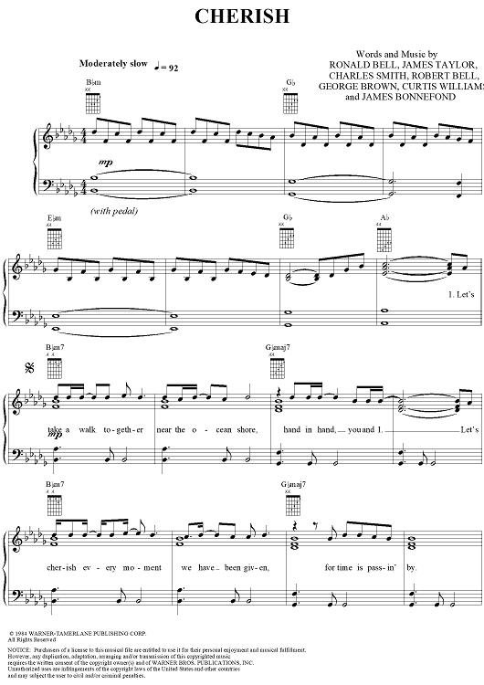 Digital Sheet Music for Cherish by Ronald Bell, Charles Smith, Robert Bell, George Brown, Curtis Williams, James Bonnefond, J.T. Taylor, Kool & The Gang scored for Piano/Vocal/Chords; id:114126