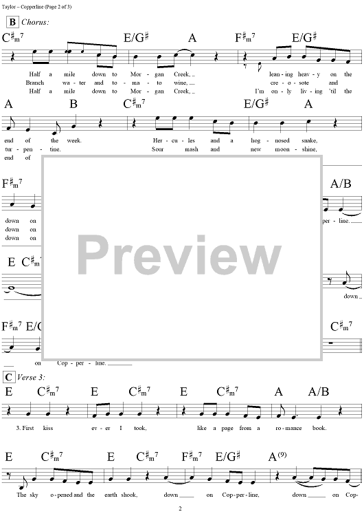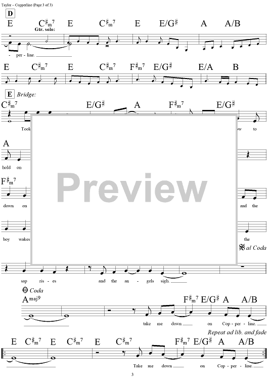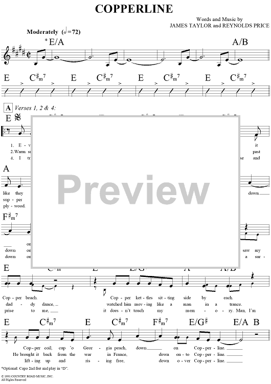Digital Sheet Music for Copperline by James Taylor, Reynolds Price scored for Lead Sheet; id:293875