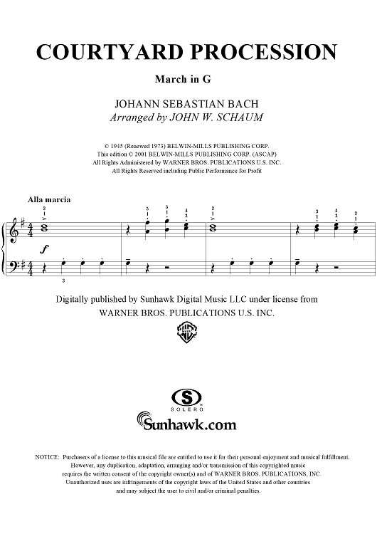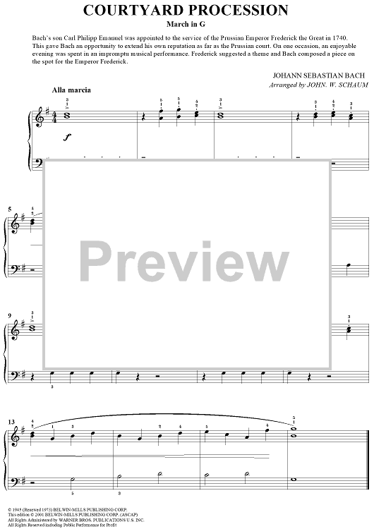 Digital Sheet Music for Courtyard Procession (March in G) by John W. Schaum, Johann Sebastian Bach scored for Piano Solo; id:293078