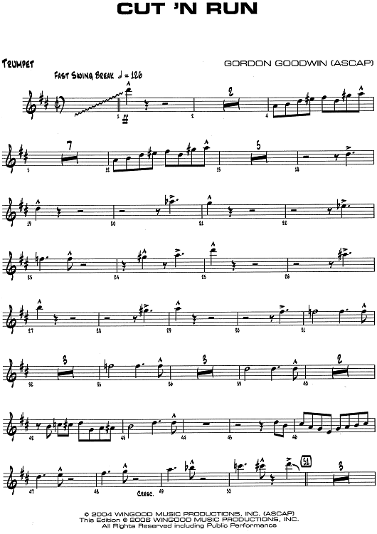 Digital Sheet Music for Cut 'n Run by Gordon Goodwin, Gordon Goodwin's Big Phat Band scored for Trumpet; id:501967