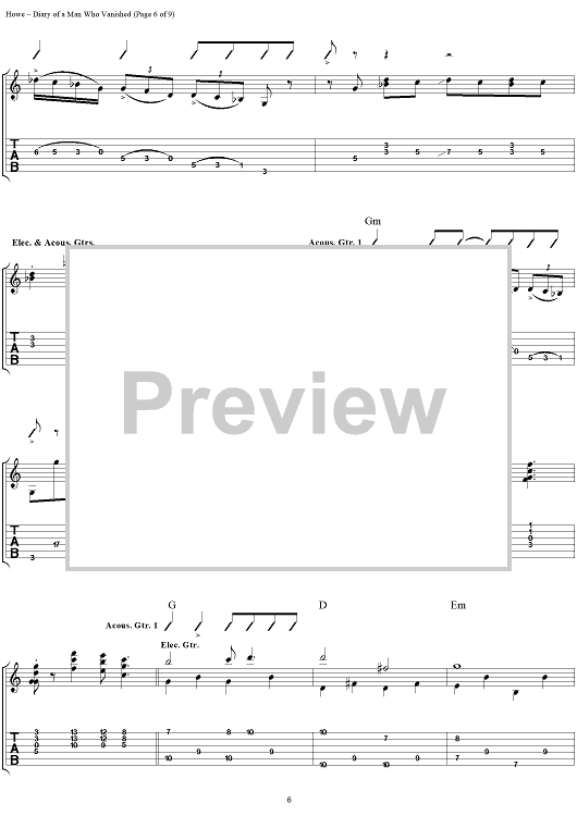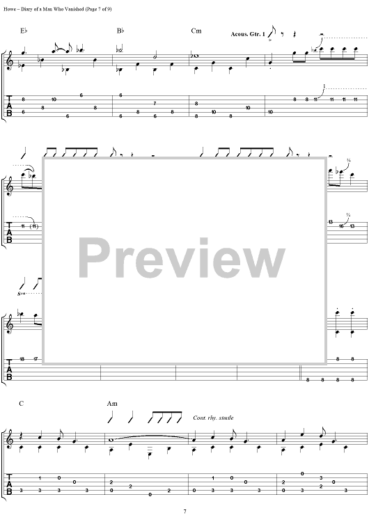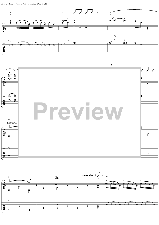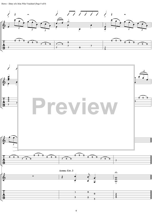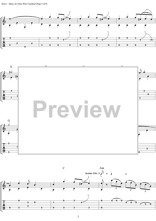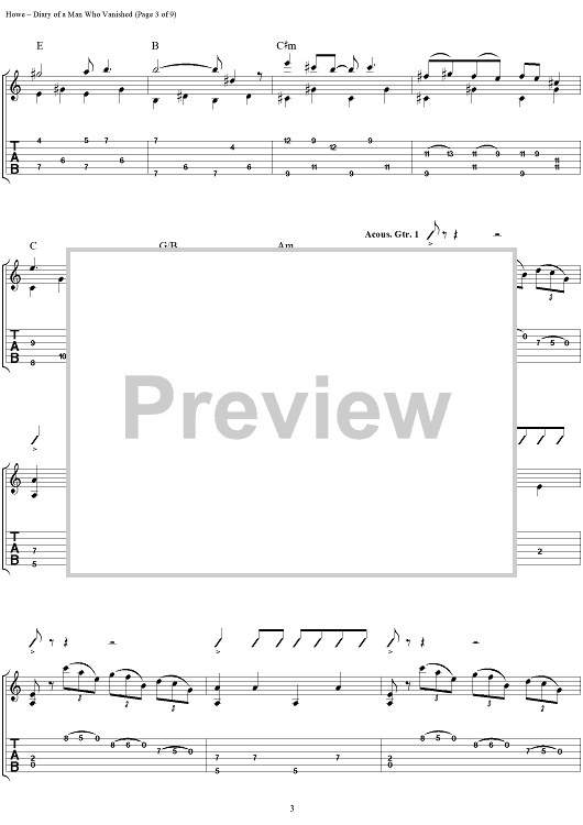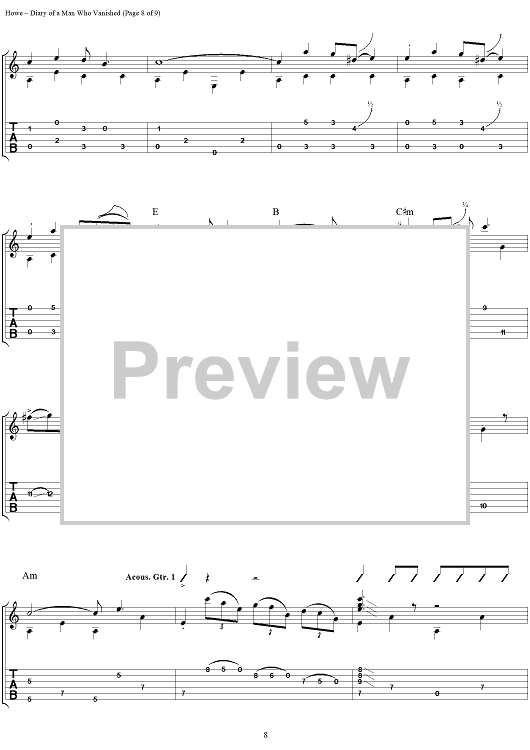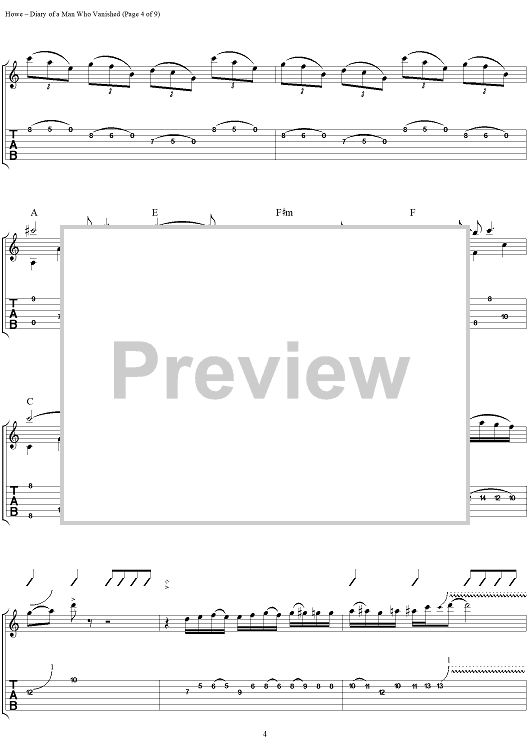 Digital Sheet Music for Diary of a Man Who Vanished by Steve Howe scored for Guitar Tab; id:111535