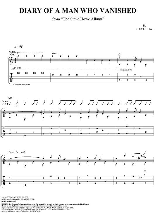 "Diary of a Man Who Vanished" Sheet Music by Steve Howe