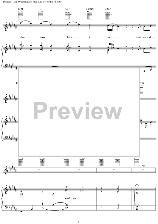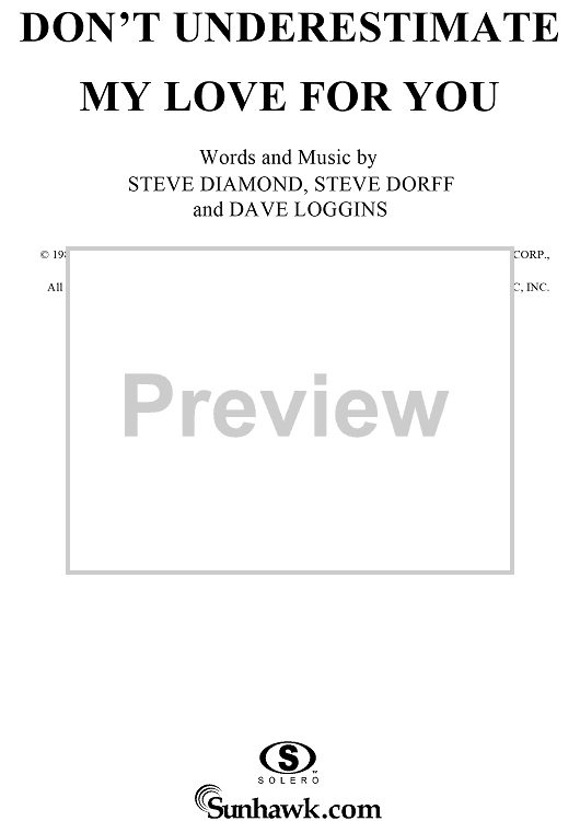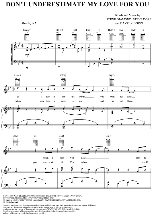 Digital Sheet Music for Don't Underestimate My Love For You by Steve Dorff, Steve Diamond, Lee Greenwood, Dave Loggins scored for Piano/Vocal/Chords; id:271585