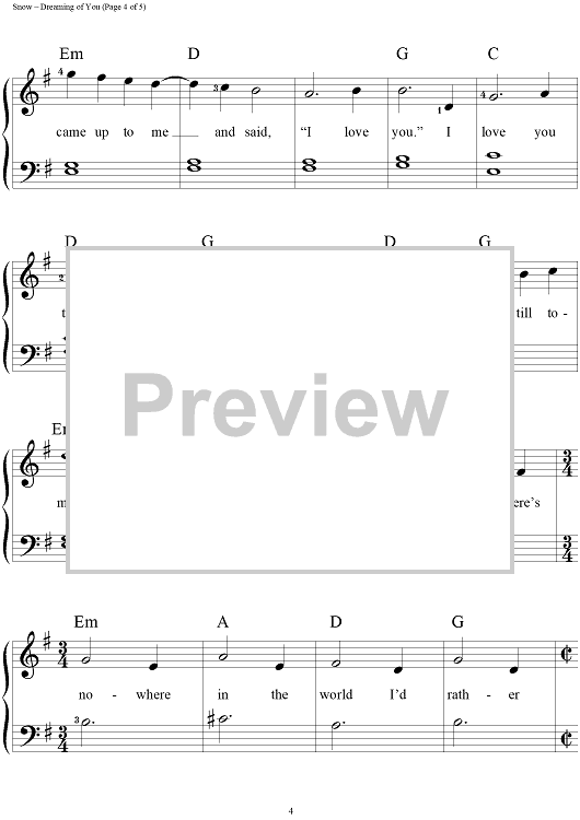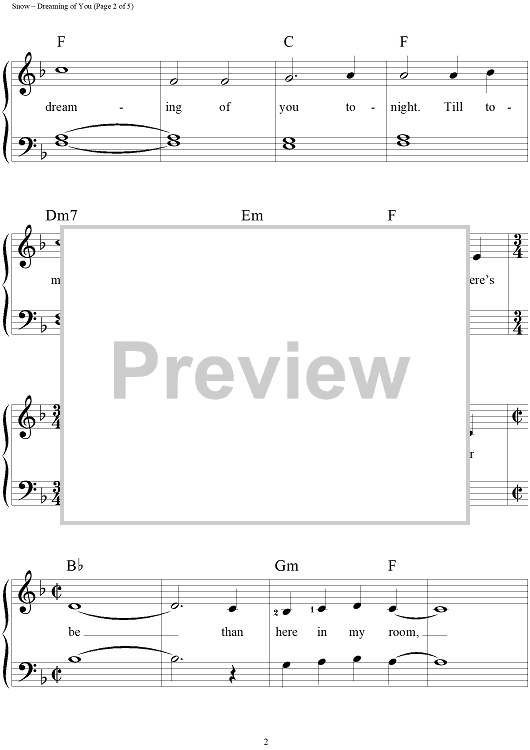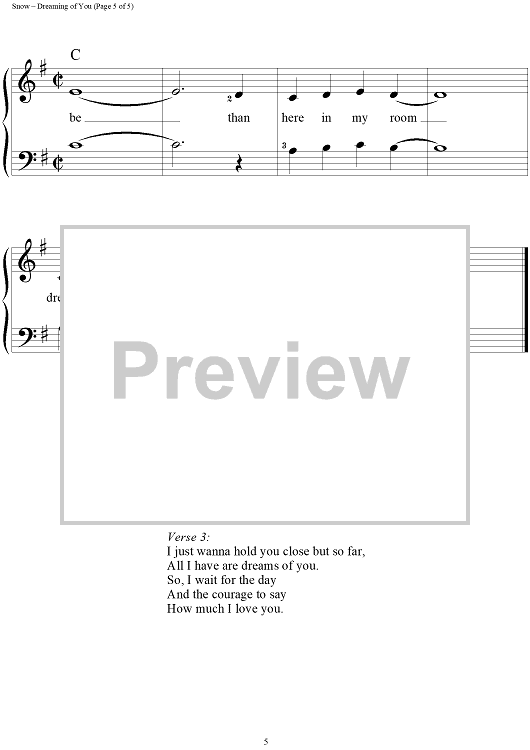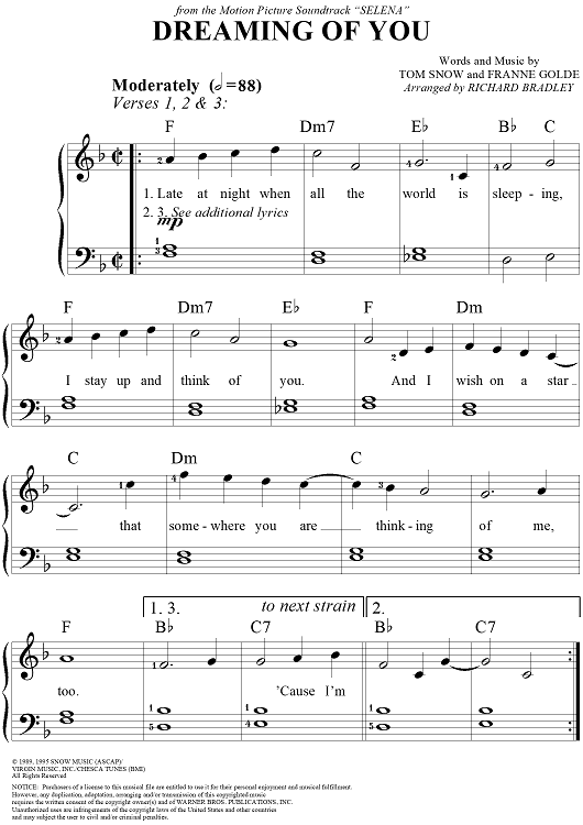 Digital Sheet Music for Dreaming of You by Richard Bradley, Tom Snow, Franne Golde scored for Big Note Piano; id:259134