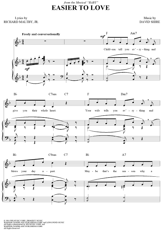 Digital Sheet Music for Easier to Love by David Shire, Richard Maltby Jr. scored for Piano/Vocal/Chords; id:257413
