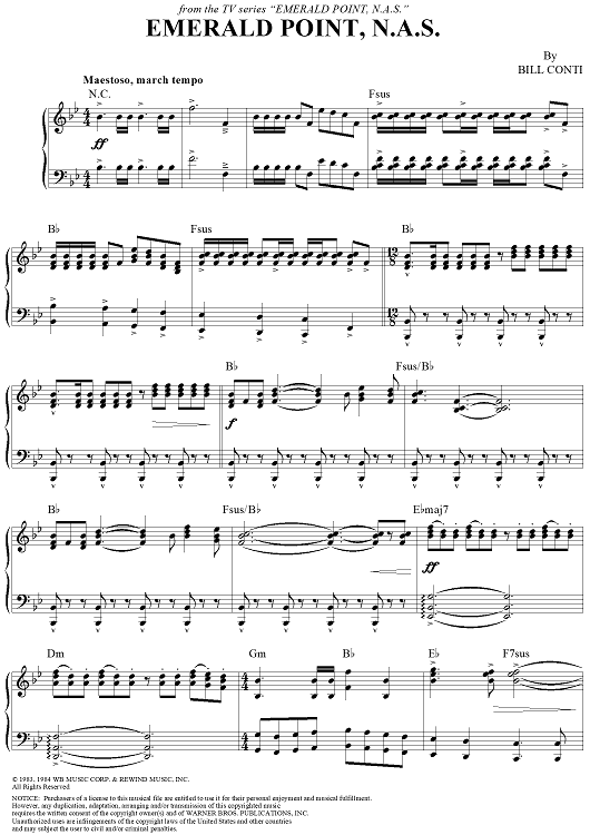 "Emerald Point, N.A.S." Sheet Music by Bill Conti