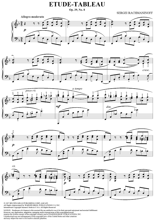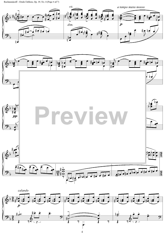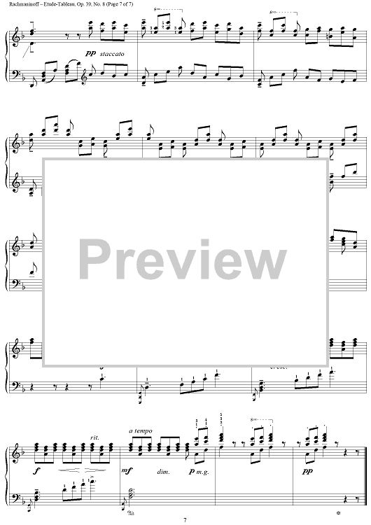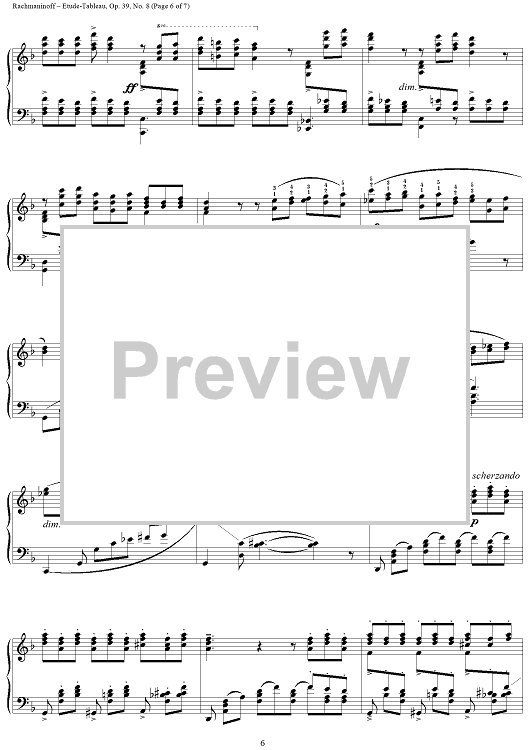Digital Sheet Music for Etude-Tableau No. 8 in D Minor, Op. 39 by Sergei Rachmaninoff scored for Piano Solo; id:255151