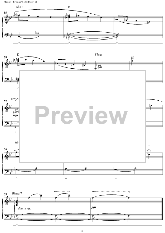 Digital Sheet Music for Evening Waltz by Larry Minsky scored for Piano Solo; id:287238