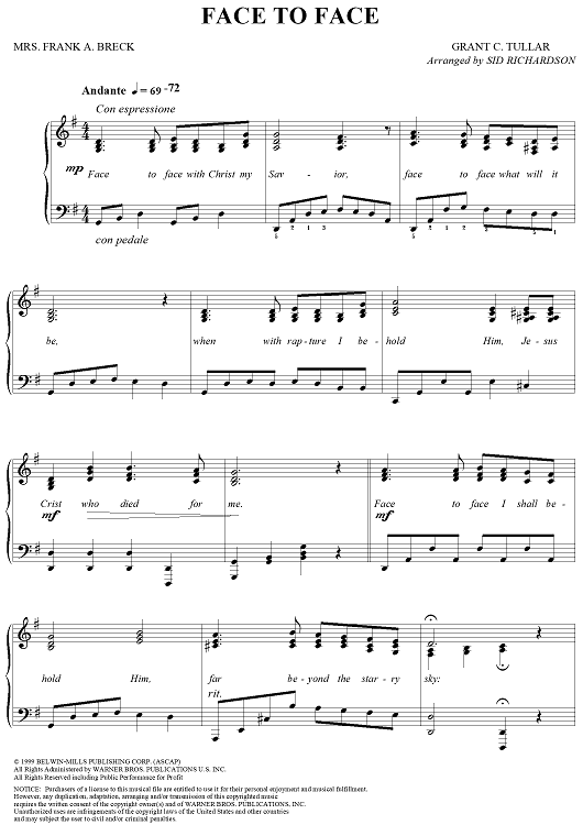 Digital Sheet Music for Face to Face by Sid Richardson, Grant Colfax Tullar, Frank A. Breck scored for Piano Solo; id:261929