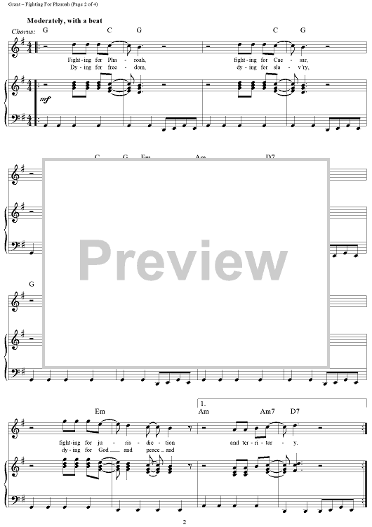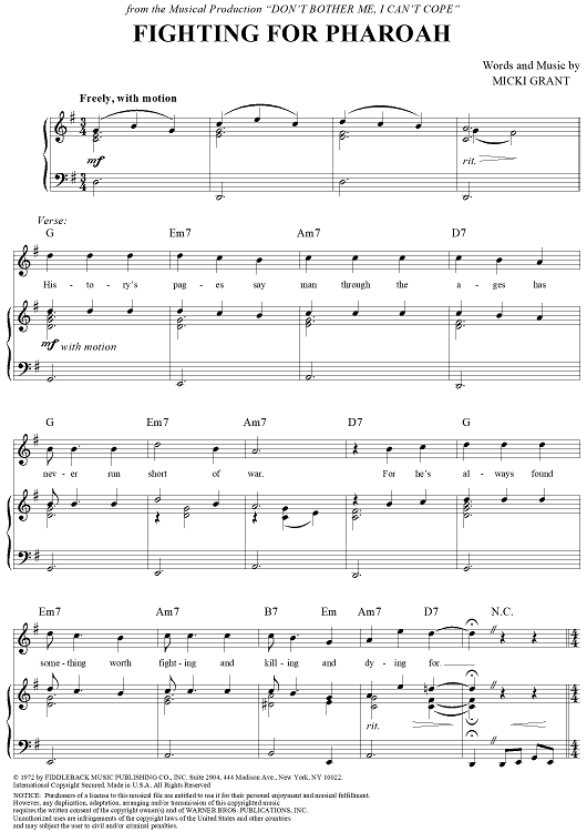 Digital Sheet Music for Fighting For Pharoah by Micki Grant scored for Piano/Vocal/Chords; id:267816