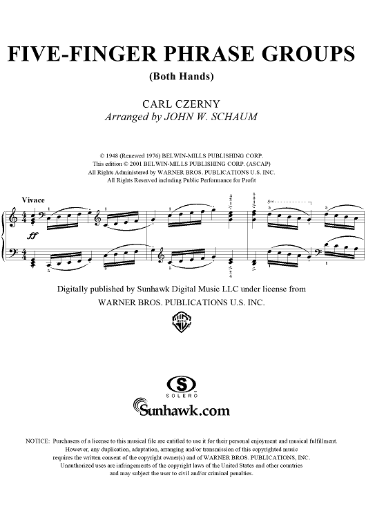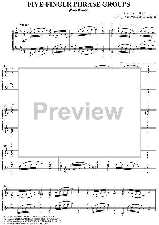 Digital Sheet Music for Five-Finger Phrase Groups (Both Hands) by Carl Czerny, John W. Schaum scored for Piano Solo; id:293096