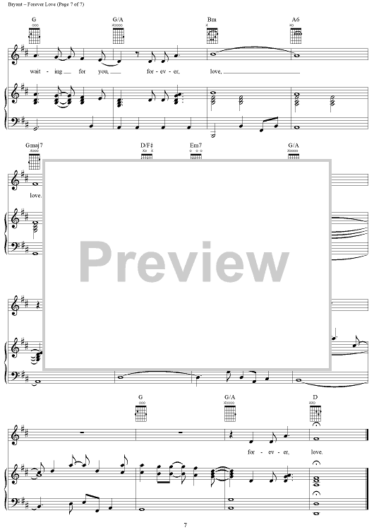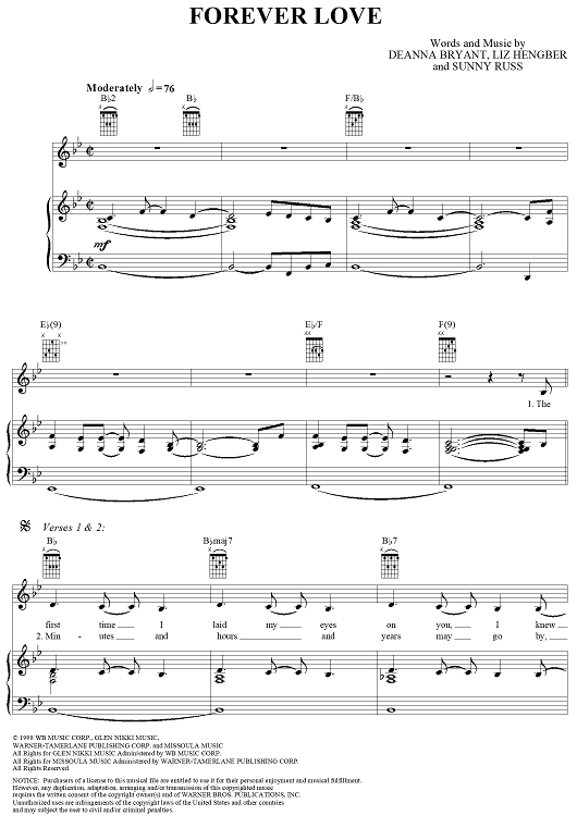 Digital Sheet Music for Forever Love by Sunny Russ, Reba, Liz Hengber, Deanna Bryant scored for Piano/Vocal/Chords; id:286670