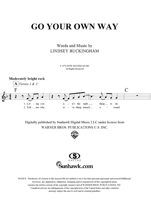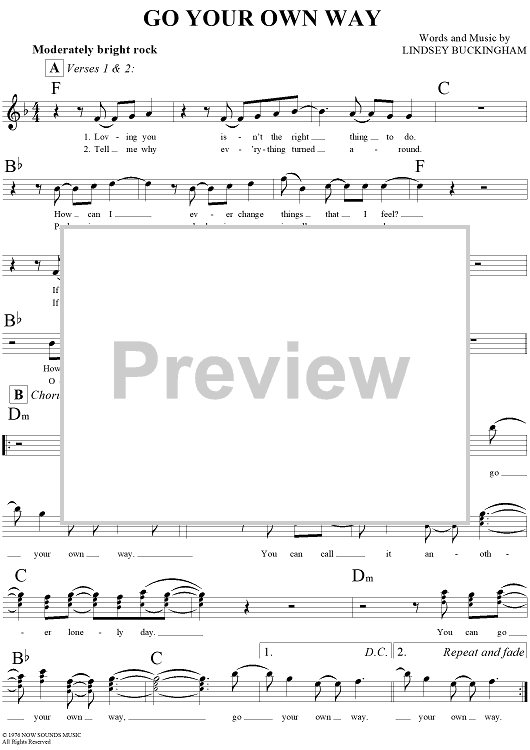 Digital Sheet Music for Go Your Own Way by Lindsey Buckingham, Fleetwood Mac scored for Lead Sheet; id:293927