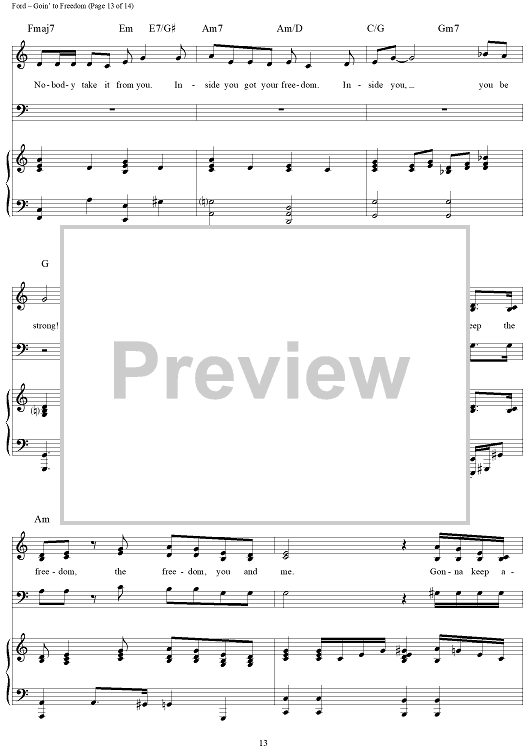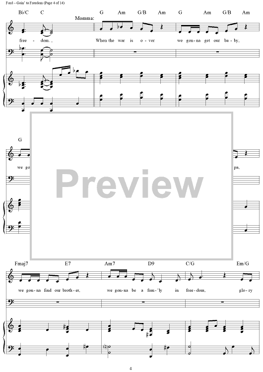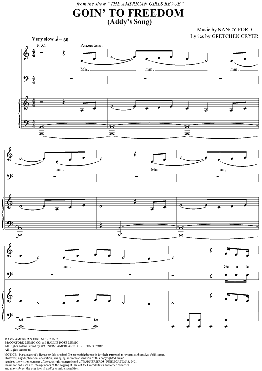 Digital Sheet Music for Goin' to Freedom (Addy's Song) by Nancy Ford, Gretchen Cryer scored for Piano/Vocal/Chords; id:269334