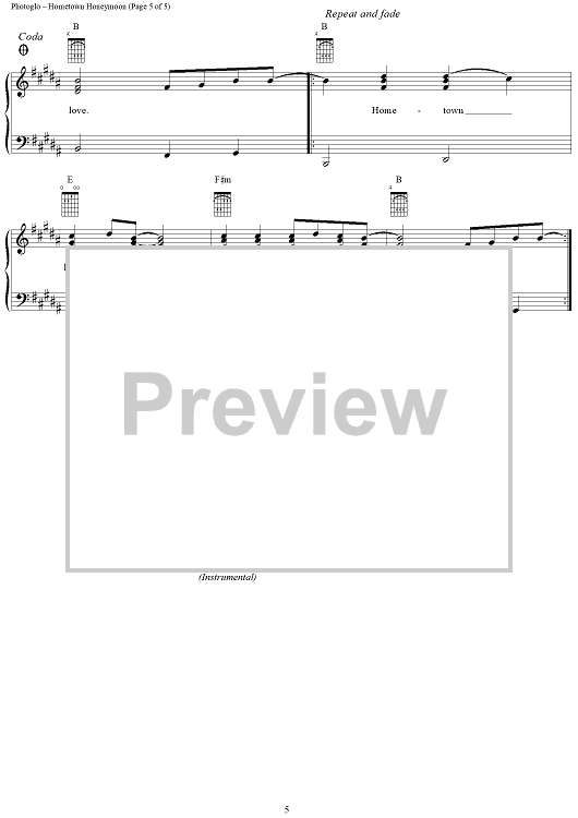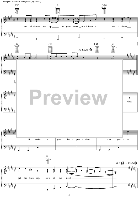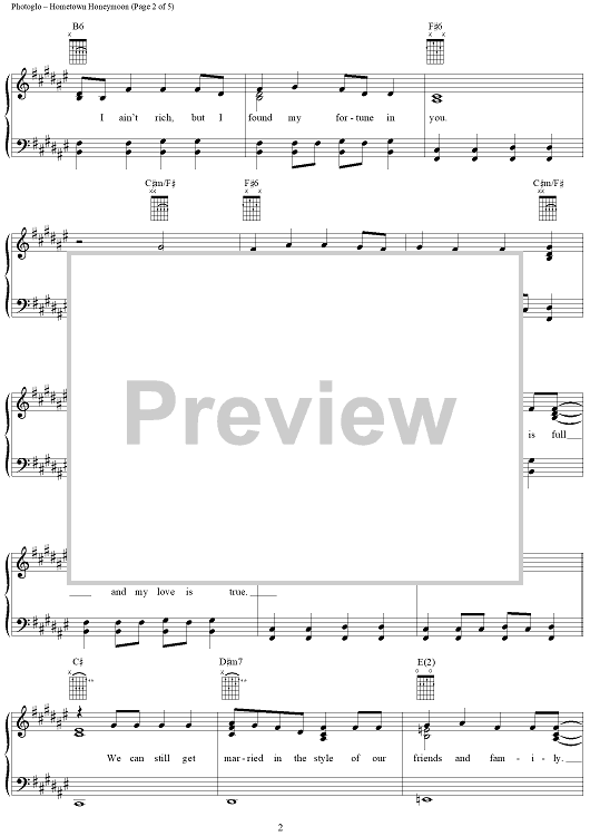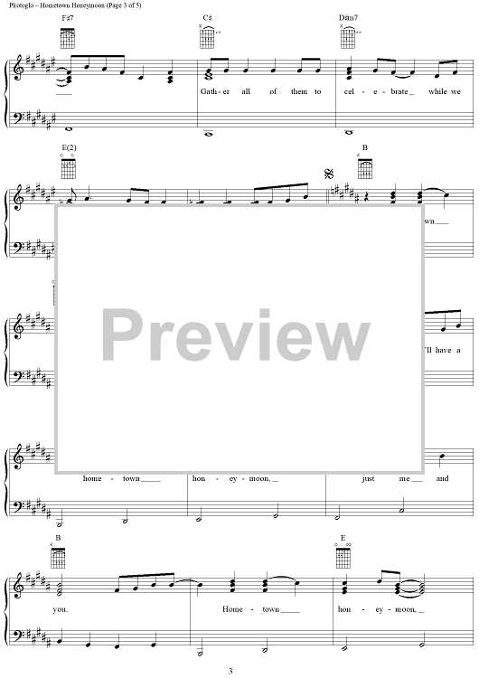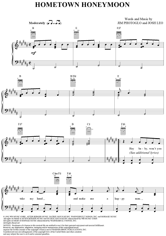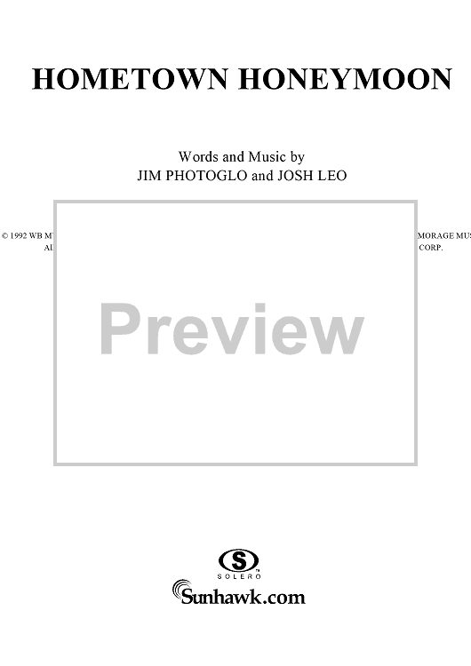 Digital Sheet Music for Hometown Honeymoon by Josh Leo, Jim Photoglo, Alabama scored for Piano/Vocal/Chords; id:254597
