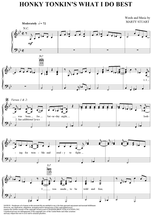 Digital Sheet Music for Honky Tonkin's What I Do Best by Marty Stuart scored for Piano/Vocal/Chords; id:259290